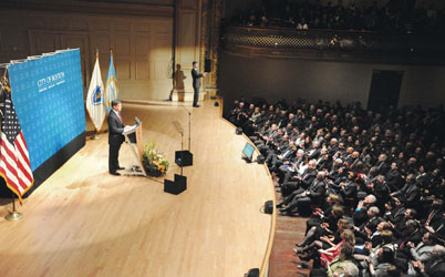 But perhaps the greatest applause and the largest part of the address was devoted to Walsh’s plan for the public schools. Promising to do better, he noted how 30 per cent of high school students don’t graduate in five years and how parents deciding what schools to choose to send their children “see a great school – quite literally – as a prize in the lottery.”