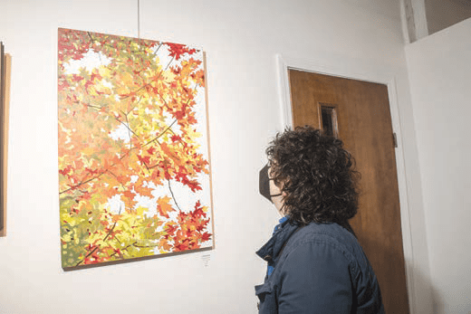 News ‘Attached’ at Stove Factory Gallery by Patriot-Bridge Staff • October 21, 2021 • 0 Comments The Stove Factory Gallery kicked off a new show called “Attached.” Pictured here are some of the art displayed at the show. A detail of Gaurav Parekar’s Sculpture14. Karla Quattrocchi looking at Fall Cascade by Ricardo Maldonado.