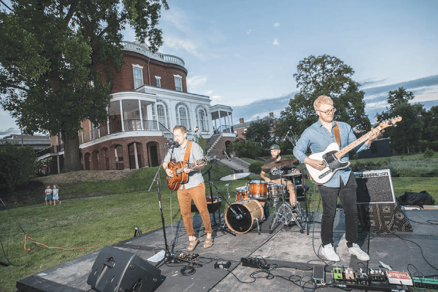 The National Park Service offers a free concert every Thursday evening on the grounds of the Commandant’s House in the Navy Yard. The featured band was The Old North (above): Andrew O’Keeffe on guitar and vocals, Ray Cohen on drums, and Hayes Cummings on guitar.